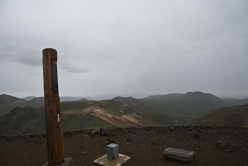2.大雪山旭岳から黒岳 旭岳と黒岳のロープウエイの駅間の縦走です。2つのロープウェイは縦走してくださいと語りかけているような位置関係にあります(日帰りで縦走可能です)。旭岳(上の写真;山頂)以外に、御鉢平(次の写真)、北鎮岳と見どころがあります。御鉢平は安達太良山の沼野平を巨大にしたような感じです。2022年夏季は縦走証明書が貰えるロープウェイのチケット(タイセツ縦走パス)が販売されていました。旭岳側から登りましたが、他の大勢の方はピストンでしたので、もったいないと感じました<日本百名山達成は旭岳><百名山登頂達成の証明について>。