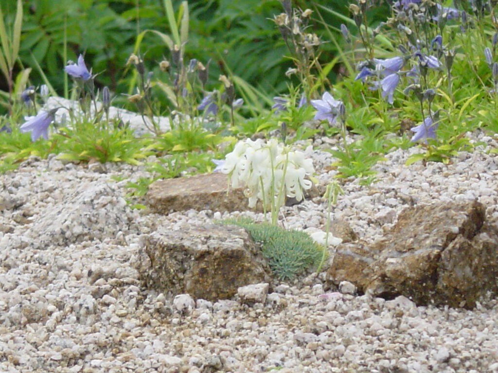 6.白いコマクサ 高山植物の女王と言われているコマクサはピンク色をしていますが、希に白いコマクサがあります。下の写真は2008年8月中旬に北アルプスの烏帽子小屋前で撮影したものです。記憶では、烏帽子小屋のご主人が育てられたようです。