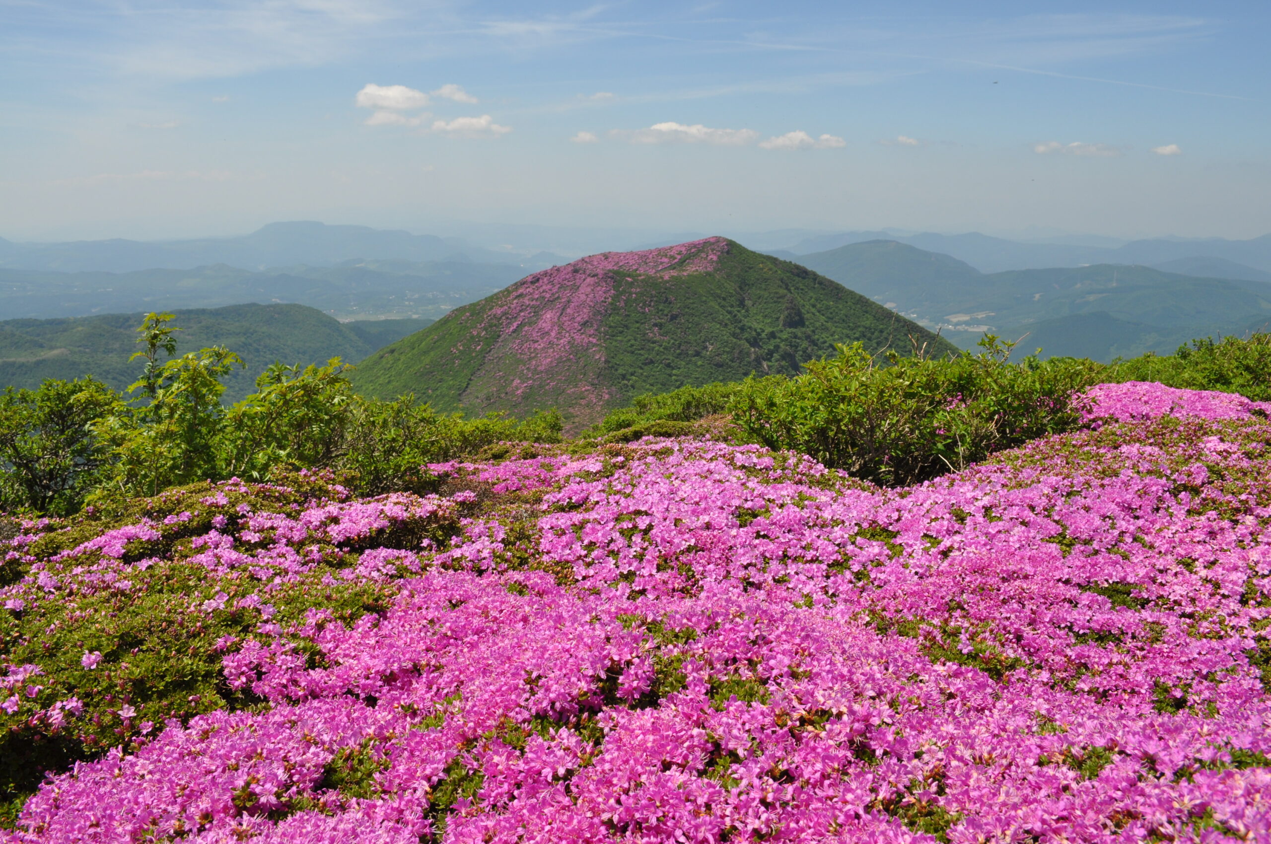 九州には日本百名山が6座あります。比較的近い位置にある九重山と阿蘇山と祖母山をセットで登る方が多いと思います。是非、ミヤマキリシマの季節(5月下旬から6月上旬ですが、年によって少し変わります。)に行かれることをお奨めします。九重山の4Kmほど北東にある平治岳(ひいじだけ)周辺(写真の1-3枚目)、また、阿蘇山の高岳の北東側にミヤマキリシマの群落(4枚目の写真)があり、ピークは1週間ほどしかないようですが、一面が花で覆わます。特に平治岳の山頂付近一帯がピンク色がかった赤色になり圧巻です。九重山と平治岳のちょうど中間あたりに温泉のある法華院温泉山荘があります。私はミヤマキリシマの季節に平治岳を4回訪れましたが、3回目と4回目は他の山には行かず、平治岳だけを登りました。平治岳は北東にある男池からも登ることができます。また、祖母山周辺でもミヤマキリシマが咲くようですが、私はこの時期に祖母山は訪れていません。祖母山はアケボノツツジが有名ですが、時期はミヤマキリシマより早いようです。