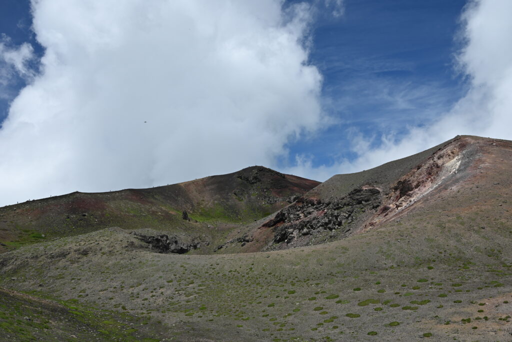 利尻岳の利尻北麓野営場から少し登ったところにある甘露泉:名水百選のひとつ。登山の復路に持ち水がなくなっていました。ここで冷たい水をたっぷりと飲むことができ、とても有難かったです(下の写真:利尻山中腹から山頂を望む)。<頂上付近が立ち入り禁止になる(?)利尻岳>。