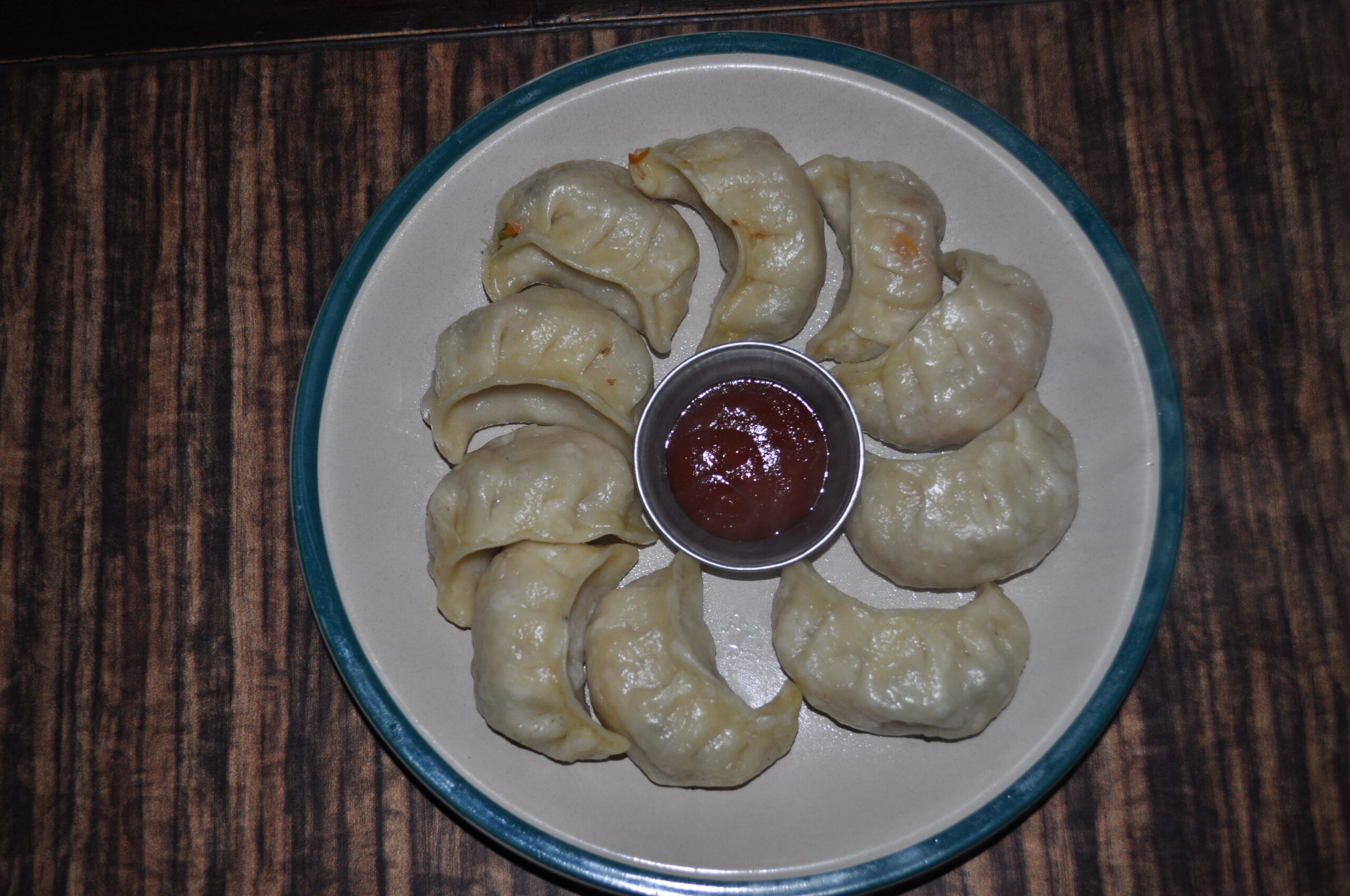 下の写真:チキンヌードルスープと野菜モモ。2019年12月ジョムソン街道のカグベニのホテル パラダイスにて。チキンヌードルスープはインスタント麺だと思われる。モモは日本の餃子とほぼ同じで、美味しかった(モモはどこで食べて美味しい)。調味料としてケチャップが付いているが、本来はネパールの辛い調味料が付いている。私は日本からアルミパック入りの醤油を持ってきたので、バッチリの味付けができた。3枚目の写真のグルン族の母娘が作ってくれた。2023年5月に再訪したが、料理人は代わっていた。