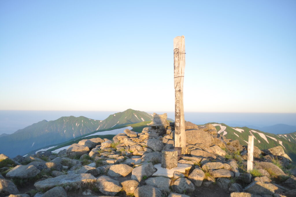 飯豊連峰 飯豊連峰の最高峰は飯豊本山(2105m)ではなく、大日岳(2128m)です。大日岳から飯豊本山を見てみたいです。下の写真は飯豊本山から見た大日岳。