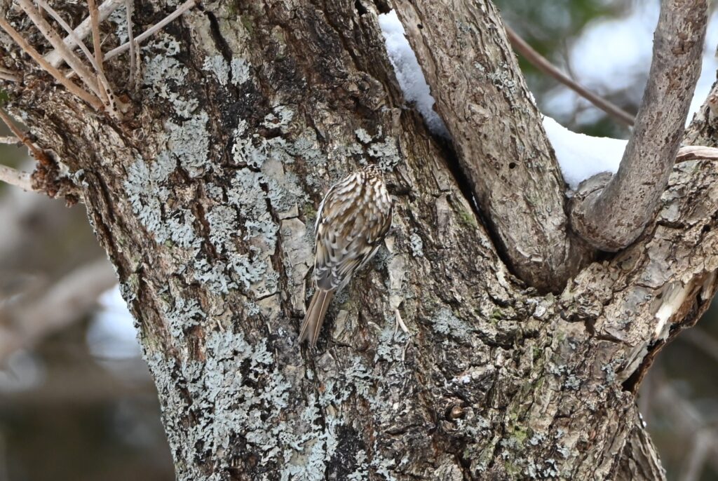 今回は3時間のツアーでしたが、ガイドさんのおかげで、キクイタダキ、キバシリ、シマエナガの写真を撮ることができました(素人の拙い写真で恐縮ですが)。もしも私一人で同じ道を行ったとしたなら(実際には道を知らなかったですし、ツアーでお借りしたスノーシューないと行けなかったです。)、餌場付近に来た鳥しか写せなかったでしょう。なお、直前に他の二人がキャンセルされ、その時間帯の参加者は私だけでしたので、写真を撮る十分な時間がありました。上記の鳥以外に、アカゲラの姿を見ましたが、写真を撮ることはできませんでした。これから、この森では樹液が出始め、鳥が増えてくるようです。葉が生い茂る前の森(年によって多少違うのですが、5月ごろ)がお奨めとのことです。また、近くの原生花園は6月が良いとのことです。