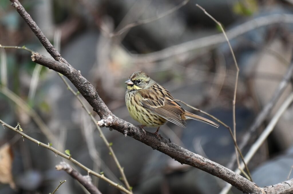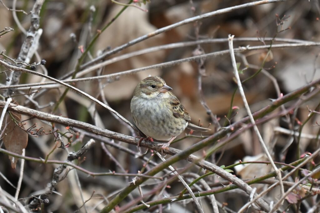オスは口元が黄色なので、私にとってはミヤマホオジロのオスと識別がつきづらいです。ミヤマホオジロは胸に三角形の黒い模様がありますが、アオジにはないのが識別のポイントのようです。