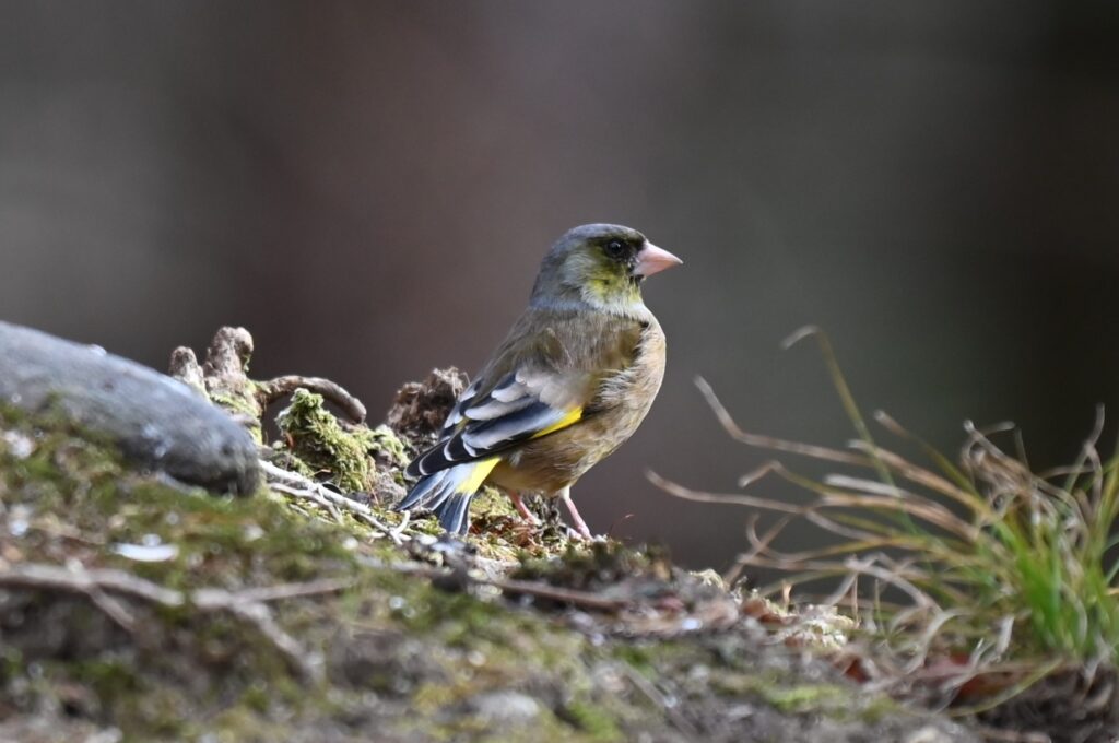 オオカワラヒワ 冬鳥 カワラヒワ(留鳥)の亜種。カワラヒワ(1枚目の写真)は、茶色い地味な羽色に翼の黄色が目立ち、冬には大きな群れを作る。秋になると少し大型のカワラヒワ(2枚目、3枚目の写真)が見られるようになるが、これが大陸で繁殖し、日本へ冬越しに来た渡り鳥のオオカワラヒワである。