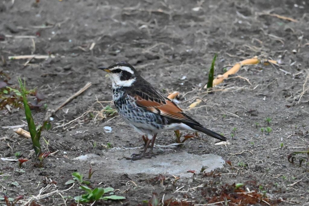 1枚目の写真は2月下旬のことですが、1羽の鳥が30mほど先の道を歩いていました。離れていたので種類はわかりませんでしたが、過去に見た鳥のどれかだろうと思いながら一応写真を撮り、家に帰ってから図鑑を見たところ、初めて見るツグミだとわかりました。鳥の種類が確認できない場合は、取り敢えず写真を撮ってから、後で図鑑で確認しましょう。スズメだと思って見過ごしていたら、実は珍しい鳥だったというケースもあるそうです。思い返せば、この鳥は独特な歩き方をしていました。今冬は例年と比べて群馬県には遅れて飛来してきているようです。この後は4月上旬まであちこちで観察できるようになりました。3枚目の写真は4月初めに、隣の敷地にいるところを自宅から撮影しました。市街地にも来るのですね。