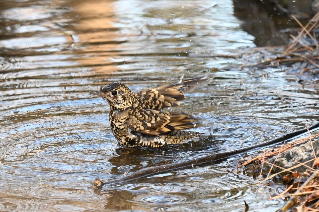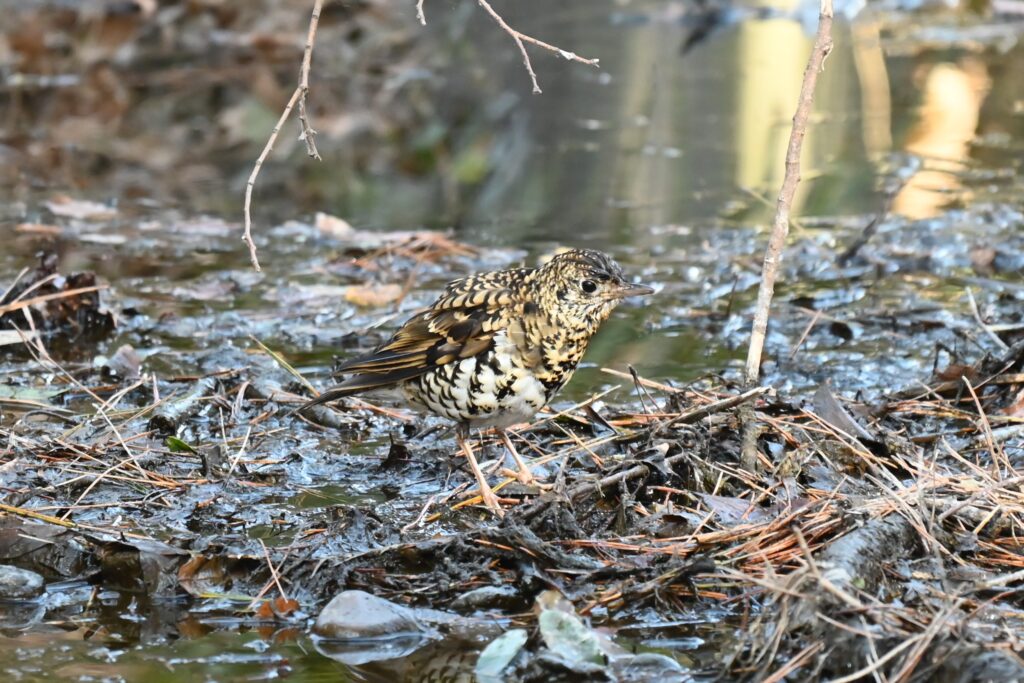トラツグミはトラダンスを踊りながら地面や水底の虫を捕食していました。この時は繁殖期でも夜間でもありませんので、残念ながら、妖怪を連想させる不気味な声を聴くことはできませんでした。