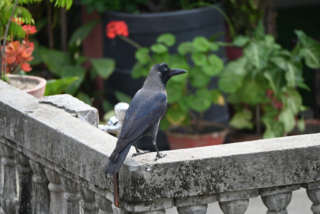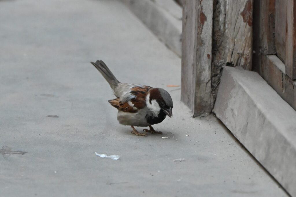 カトマンズの市街地の野鳥には、日本の市街地と同様に、雀、烏、鳩がいた。鳩は日本と同じ種類のドバトで、雀と鳩は日本のものと種類が違っていた(下の写真、イエスズメとイエガラス)。ヒンズー教の考えからか、野鳥に餌を与えるという習慣があるようで、市街地の野鳥の数が多いように思われた。なお、同様の理由からか、日本では考えられないが、市街地には野犬がやたら多い。ほとんどの野犬はおとなしいが、稀に吠える野犬もいる。猫もいるとのことだが、市街を歩いていて見かけた記憶はない。