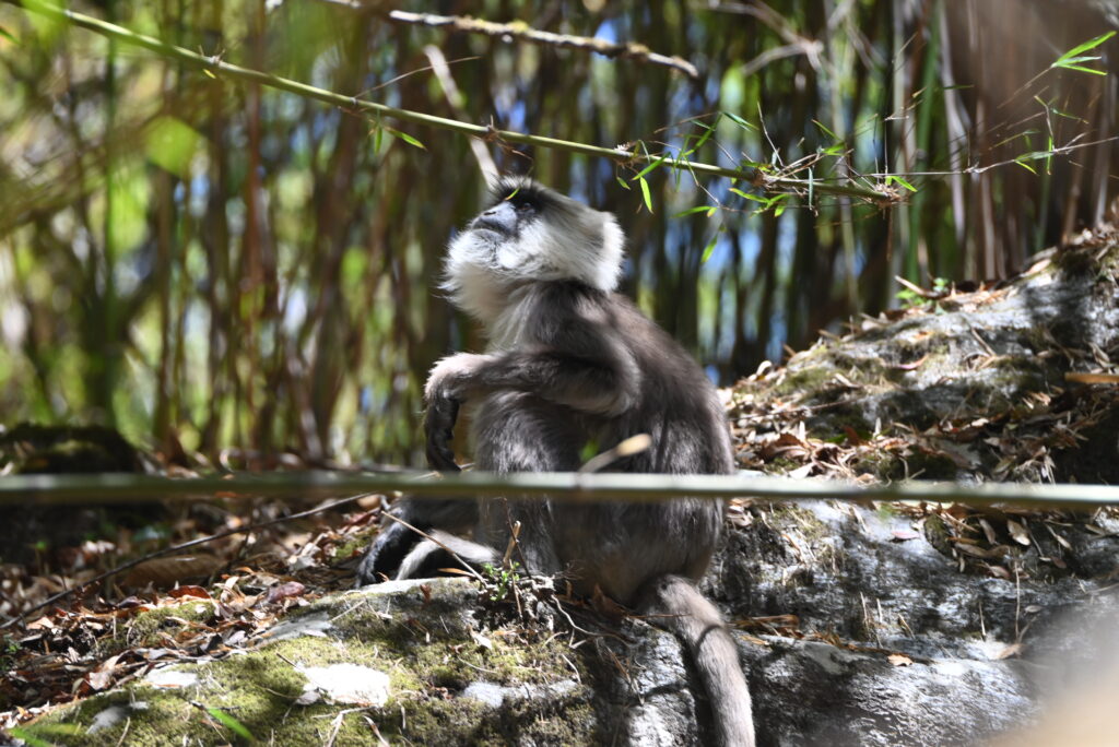 4月20日 昨日はバンブー(1980m)に宿泊した。朝の散歩でも新しい野鳥を見つけた(ノドジロガビチョウ、下の1枚目の写真)。日本ではガビチョウは外来種であるが、ここでは外来種ではないだろう。7時30分に出発。ゆっくりしか歩けない。昨日雨が降っていなくてもラマホテルには辿り着けなかった可能性が高いと思った。トレッキング道からはハヌマンラングール(2枚目の写真、至近距離にいるのに人に慣れているのでしょうか逃げません、インドでは神の使いとして崇められています)や野鳥(3枚目 オオルリチョウ、4枚目 ノドグロヒタキ雄、5枚目 ノドグロヒタキ雌(帰りに撮影)、6枚目 ノドジマコバシチメドリ)が観察された。3時間ほどずっと上りで、ラマホテル(2420m)に到着。そこからは鳥撮影も含めて何度も休憩し、12時30分にグムナチョク(2670m、別名リバーサイド)に着いて昼食休憩。