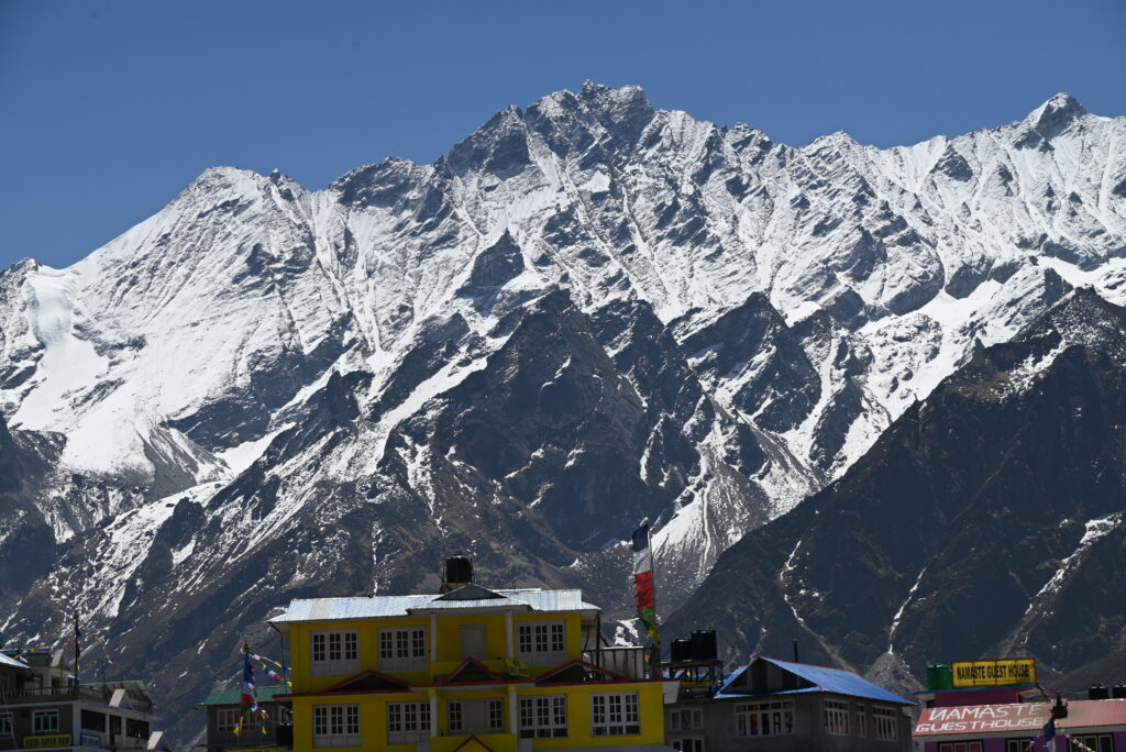 7時40分にロッジを出発し、正面にガンチェンポ6387mを見ながらゆっくり進む。今日はずっとゆるやかな上りである。木が少なく、野鳥は少ないが、ヒマラヤイワヒバリがいた(下の写真1枚目)。進むにつれ、より多くの雪山が見えてきた(2枚目 ガンチェンポ(6,387m)真ん中、3枚目 ヤンサ・テンジ(6,543m)、4枚目 ポンゲン・トクプ(5,930m))。壮観である。12時ごろにキャンジン・ゴンパ(3,800m)に到着。富士山より高くなったが、高山病の症状は、たまに軽い頭痛がする意外にはない。前出のガイドさんに今日も会った。ロッジはたくさんあるが、彼女の姉が経営しているというチベット・ゲストハウスにした(5枚目)。すべての食事をそこで取るのなら宿泊費は無料とのことである。ただし、キャンジン・ゴンパは最奥地のロッジなので食事代は他の村よりも高めである。ドミンからは車道がないので、ここまでは食材をラバが運搬しているのだろう。途中で多くのラバの隊列と会った。