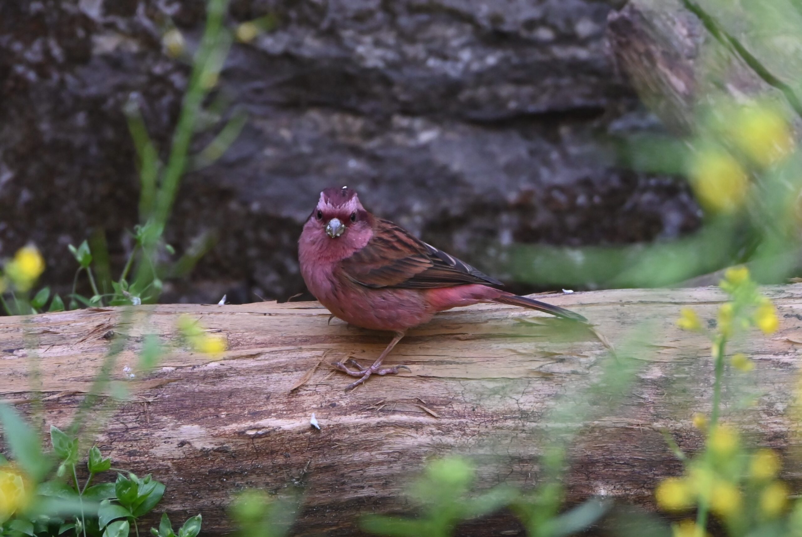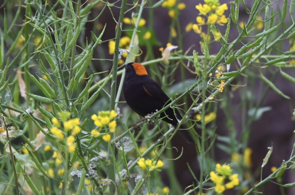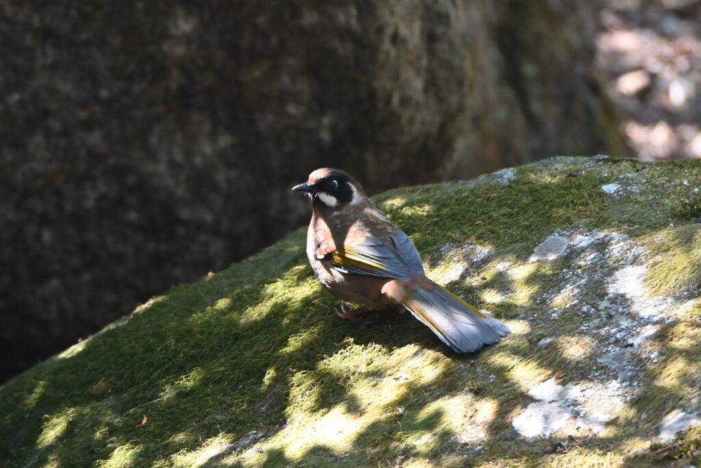 4月26日 昨日はグムナチョク(2,670m)に宿泊した。本日は下山の2日目でトレッキングの最終日。7時20分に出発。今日も野鳥を写しながらの下山になった。行きには気づかなかったが、ラマホテルのロッジの前がちょうど野鳥の水浴び場になっていて、複数種の野鳥が集まっていた。行きにゴラ・タベラ近くでも見たバラマユマシコ(日本のオオマシコに似ている)がいたので写真を撮っていたら、少し離れた菜の花似の花に止まって花を食べている新しい種類の鳥(ズアカクロマシコ)に気づいて、そちらにカメラを向けて撮っていた。すると、バラマユマシコがカメラの画角に割り込んできて、花を食べ始めた。本日は帰り道であったが新たに少なくとも4種類の新しい種類の野鳥を見つけた。本日の一日を使って、もしもバードウォッチングに専念していたら、もっと多くの野鳥を見つけることができたと思う。ネパールの野鳥は花の蜜を吸ったり、花を食べる種類が多いように感じた。高山植物が咲く時期に来れば、より多くの種類の野鳥が観察できるかもしれない。日本では積極的に花に集まる野鳥は、ヒヨドリ、メジロ、シジュウカラがいる。行きに宿泊したバンブー(1,960m)で昼食をとった。今日も途中までずっと下りであったが、ランドスライド(1,640m)からドミンまでの間に100mほどのアップダウンがあった。下山道の上りは精神的にきつい。