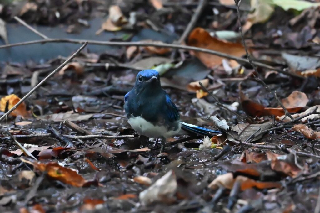 コマドリに似たさえずりをする(コルリは前奏があると言われています)のですが、なかなか姿を現してはくれません。1枚目の写真を撮った時は、この水場には、午前中の短い時間帯に、マミジロのオスとメス、クロツグミのオスとメスとこのコルリのオスが次々に訪れ、カメラマンは大忙しでした。トリを務めたコルリは、この中で最も警戒心が強いのかもしれません。メスは、キビタキやオオルリのメスとの識別が難しいのですが、コルリは腰に青みがあり、足が長いのが特徴です。