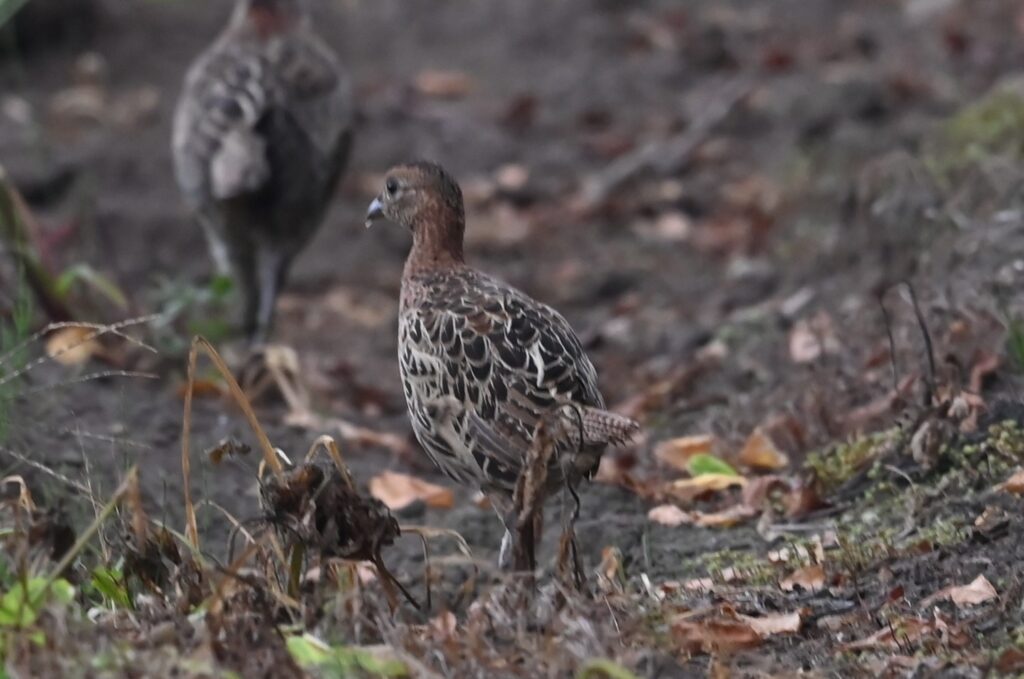 ⑤ 北海道北斗市の低地で7月に見かけました。住宅のすぐ横の茂みから6-7羽が出てきたのですが、この幼鳥名がわかる方はとても野鳥に詳しい方です。