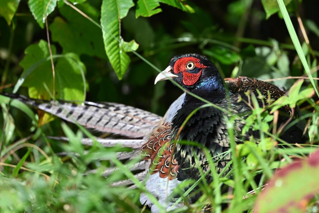 9月中旬に長野県の高峰高原に向かって山道を運転していると、道路脇に大きめの野鳥がいるのが見えました。ひょっとしたらヤマドリだったかもしれないと思い、その反面、たぶん奥に引っ込んでしまっただろうとダメ元で引き返すと、そこにいたのはキジのオスでした。図鑑ではわかりづらいのですが、この野鳥は日本の国鳥にふさわしい美しさを有しています。メタリック調の緑、青、水色、紫、茶色などを緻密に配色した美術品が10mほど先で動いているのが不思議でした。メスがオスを外見で選んできたために、このような美しい姿に進化したのでしょう。カメラをニコンZ5からZ5IIに変えたばかりで、鳥認識が作動して、ピントが合いやすくなったことは確かですが、画質も良くなっているような気がします。下のキジオスの写真は(セットとして)これまでに私が撮った野鳥の写真の中で最も美しい写真だと思います。このキジは車が通るすぐ横の道端の草の実(他ならぬ黍(きび)かもしれません、1枚目の写真)を食べていましたが、この後、交通事故に遭っていないか心配です。