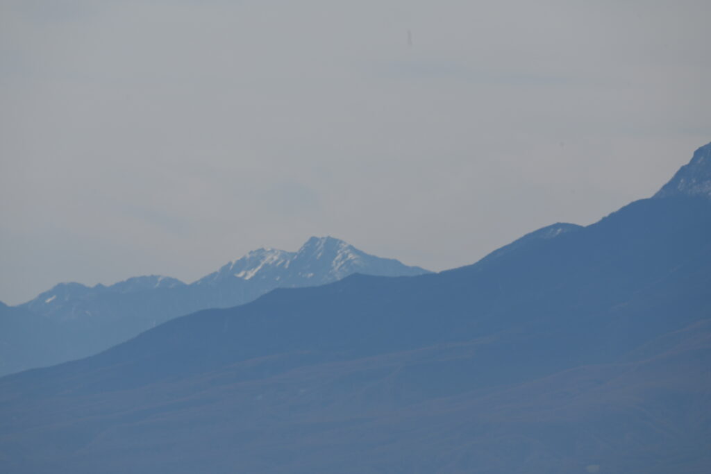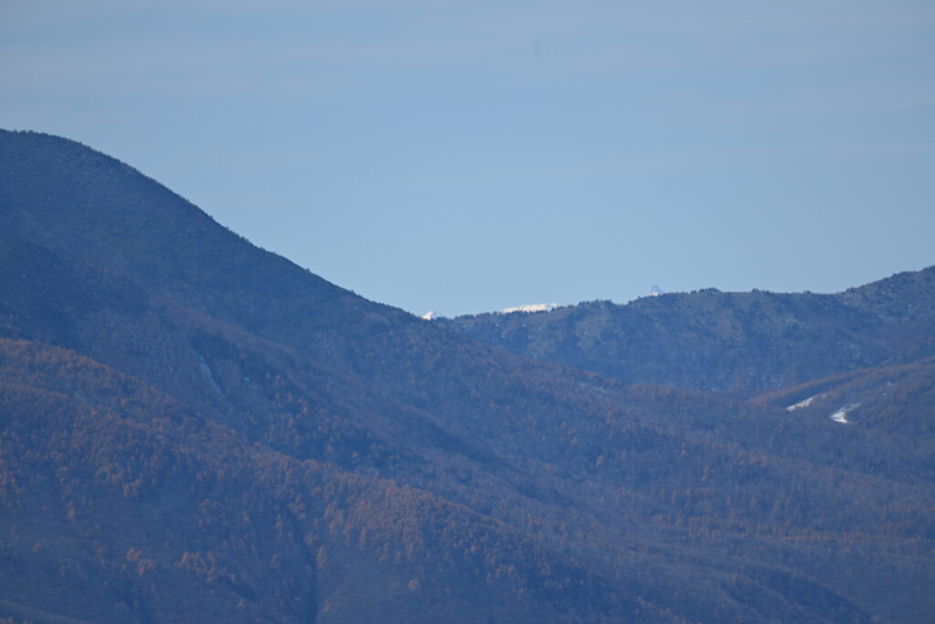 写真は富士山から始まって、時計回りの順に載せてあります。目の前の浅間山(4枚目、山頂しか写っていません)が圧倒的な存在感を示していますが、天気が良かったので、富士山(1枚目)、北岳(2枚目)、八ガ岳(3枚目)、槍ガ岳(5枚目)、剱岳と鹿島槍ガ岳(6枚目)、燧岳(7枚目)、日光白根山(8枚目)などの日本百名山が見えました。これら以外にも多数の日本百名山が見えていたはずですが、特定できなかったり、雲をかぶったりしていました。