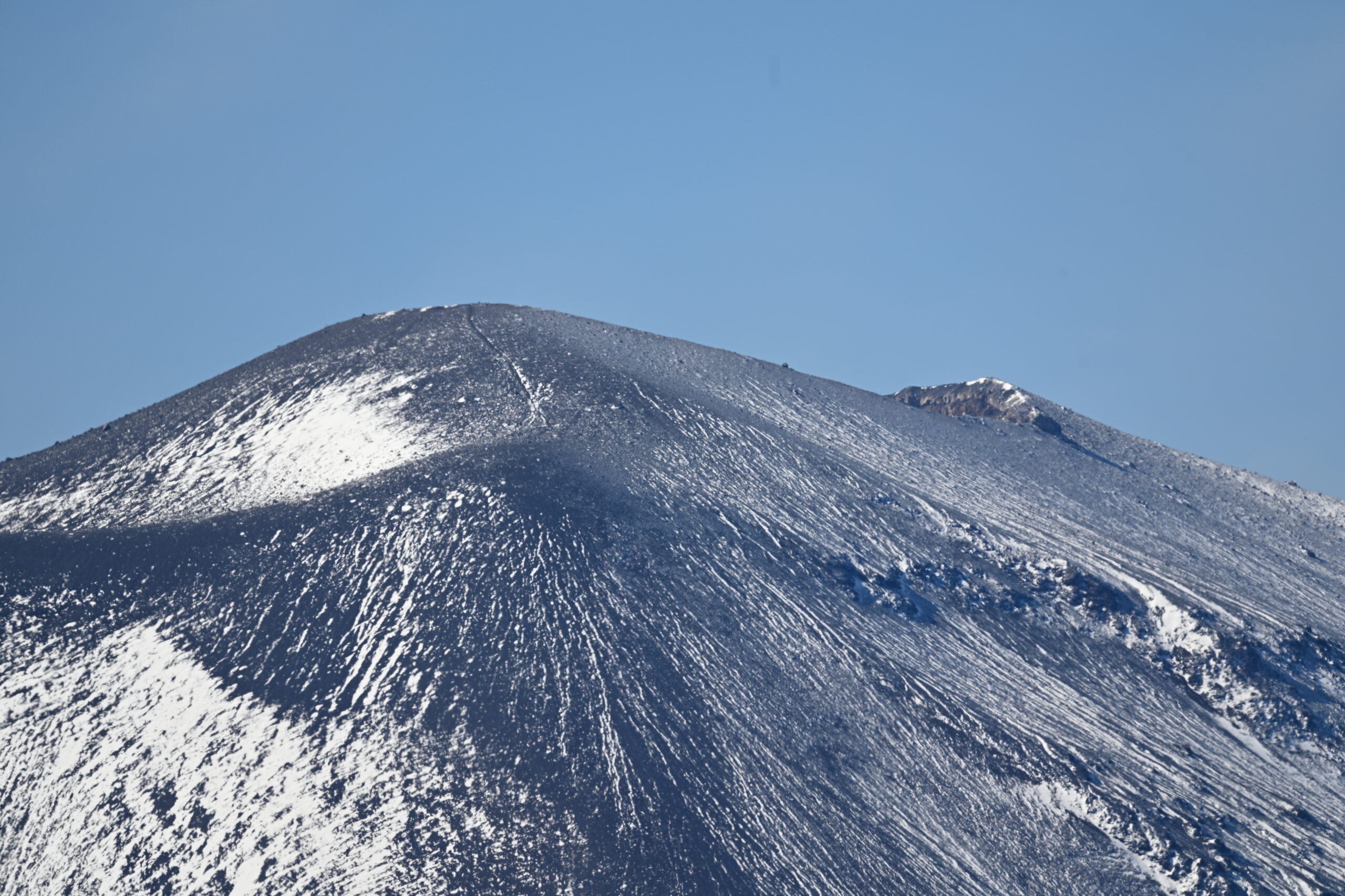浅間山 近すぎて山頂しか写りません。登山道が見えますが、現在、噴火の影響でこの辺りは立ち入り禁止です。