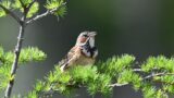 クロジ ホオジロ科 褐色系の色が多いホオジロ類としては、全身が暗灰色で異色の存在。北海道と本州中部以北のササが茂るブナ林や針葉樹林で繁殖し、冬は本州中部以南の平地のスギ林や常緑樹林などの暗い森に生息する。やぶの中の地上で種子を採食するため、なかなか姿を見せてくれない。オスは全身が暗灰色で、下嘴と足が肉色。メスはアオジのメスに似るが、黄色味がなく、腰が茶色い。