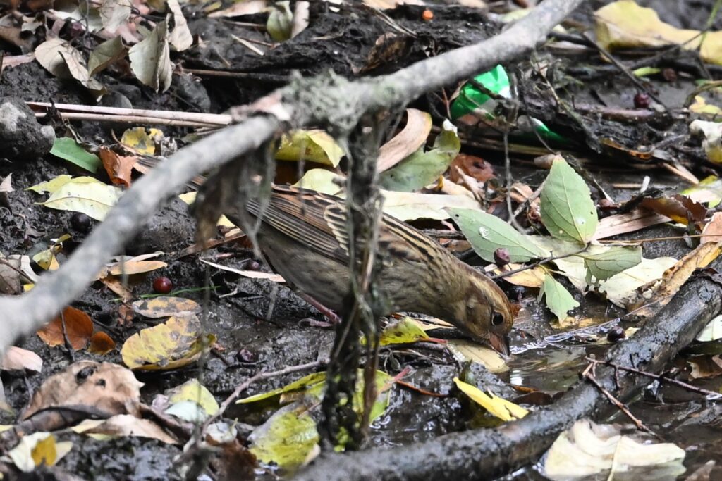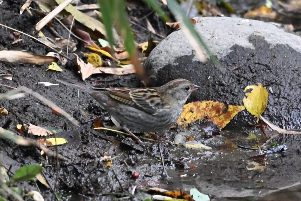 アカハラ 先月はここ(標高約100m)よりも標高の高い赤城ふれあいの森(標高約1,000m)でアカハラの幼鳥を観察しました(野鳥近影Oct2025-3)。この個体はマミチャジナイ(野鳥近影Oct2025-1)と似ていますが、白眉が薄いです。日本野鳥の会群馬に問い合わせたところ、以下の回答をいただきました。「大雨覆に白い斑があるので幼鳥です。わりと明瞭な眉斑があるあまり見ないタイプですが、種はおっしゃるとおりアカハラですね。幼鳥の性は不明とするのが妥当です。脇の橙色が濃く、顔も少し黒っぽく写っているので、この色味が正しければオスかもしれません。ですが、私なら性不明とします。」