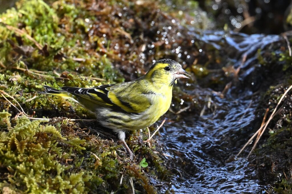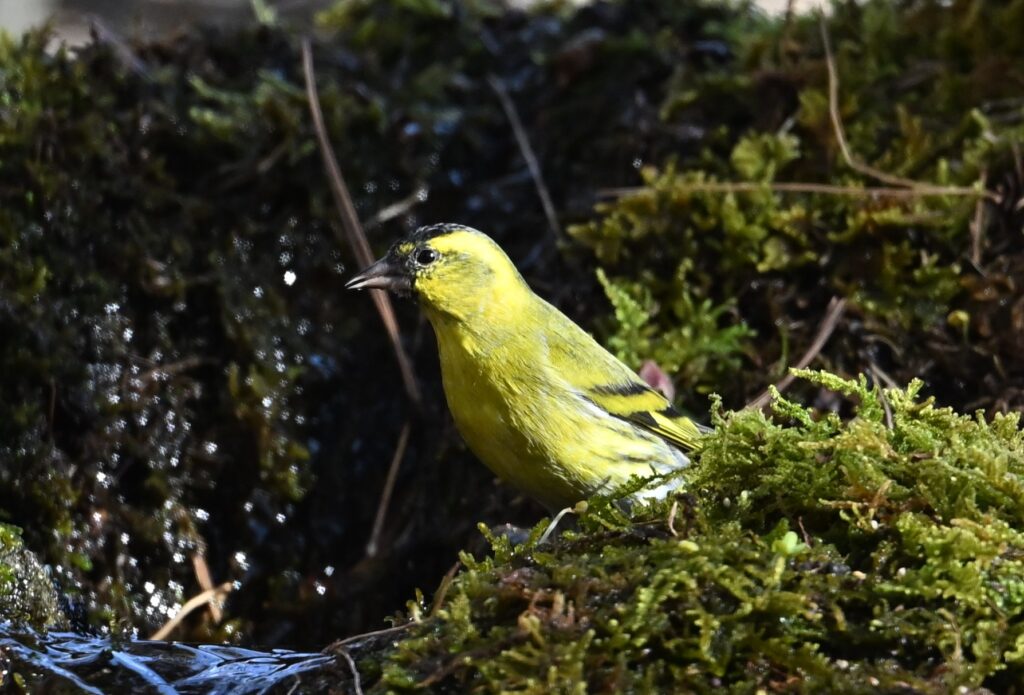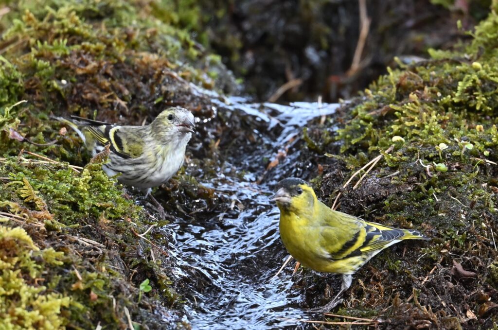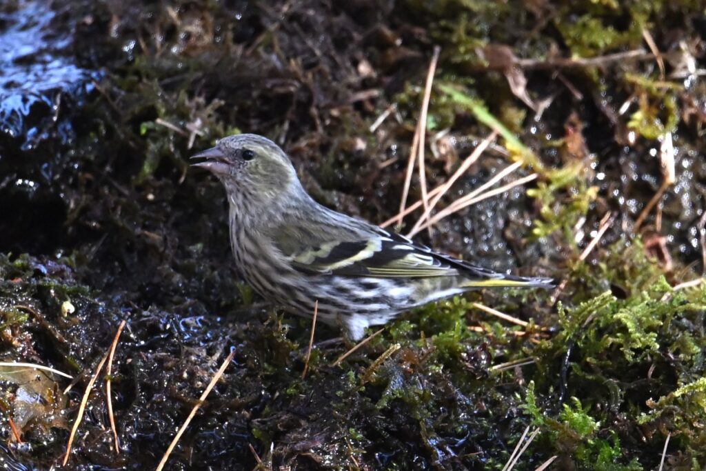 マヒワ アトリ科 オスは体全体が黄色で頭頂が黒い。メスは体全体が薄い黄色で体下面は白地に褐色の縦班が目立つ。昨シーズン(2024~2025年)にはマヒワは1羽しか見かけませんでしたが、今シーズンは毎回複数羽で3回目の観察です。
