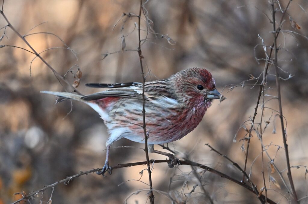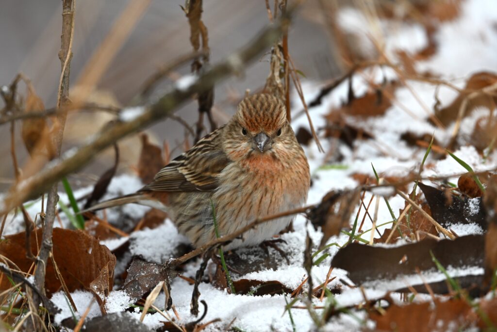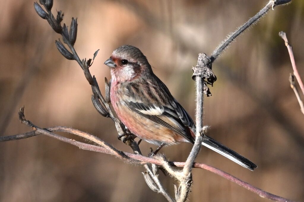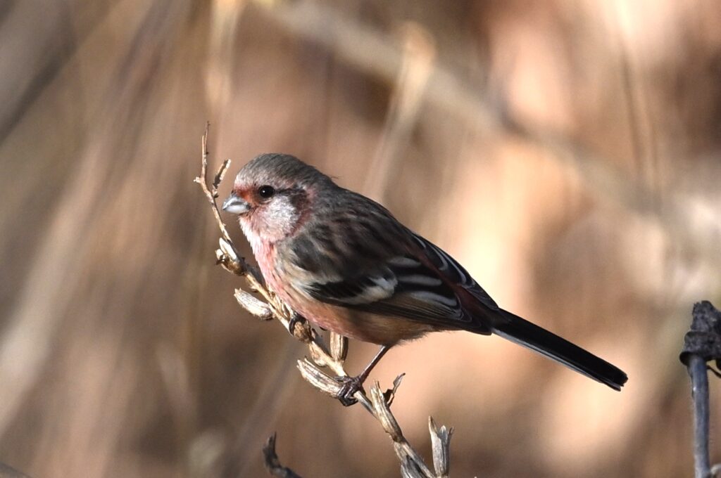 ベニマシコ アトリ科 ベニマシコは今年の1~3月にも丹生湖で撮影しました(冬の野鳥4 アトリ科)。その時のレンズはニッコールZ 180-600mm f/5.6-6.3でしたが、4月にニッコールZ 600mm f/6.3に変えました。ニコンの説明員の方が言われていましたが、今のレンズの方が立体的に写ります。重さ約1,4Kgで、手持ち撮影用のレンズとしてはとても性能の良いレンズだと感じています。1,2枚目はオス、3枚目はメスです。ベニマシコは野鳥の中では警戒心が強い方だと感じていますが、食時中は無我夢中になっていて警戒心が緩むようで、シャッターチャンスです。数羽で藪を転々と飛び渡って採餌していましたが、最も近くは15m位の所まで来てくれました。