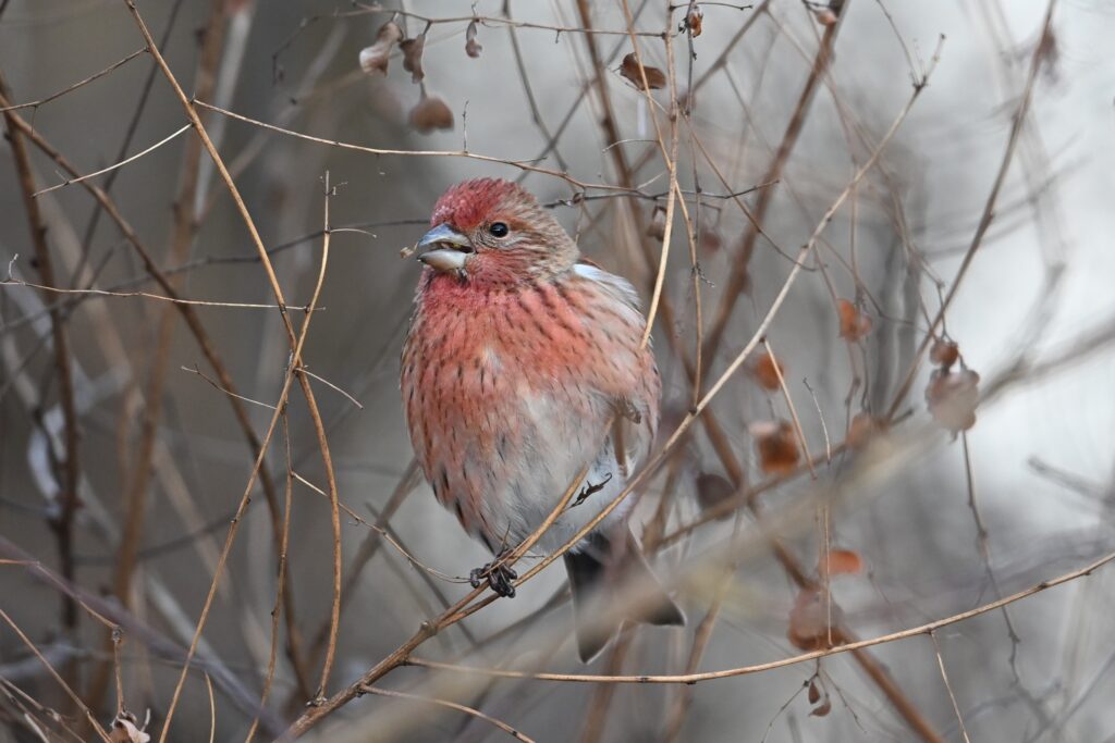 12月末に、群馬県富岡市の丹生湖で撮影したベニマシコ(冬鳥、ただし、北海道や青森県では夏鳥)、および、長野県岡谷市の塩嶺王城パークライン(通称岡谷林道)で撮影したオオマシコ(冬鳥を紹介しを紹介します。今回は赤い鳥でまとめました。ベニマシコとオオマシコはよく似ていますが、見比べると違いがわかります。