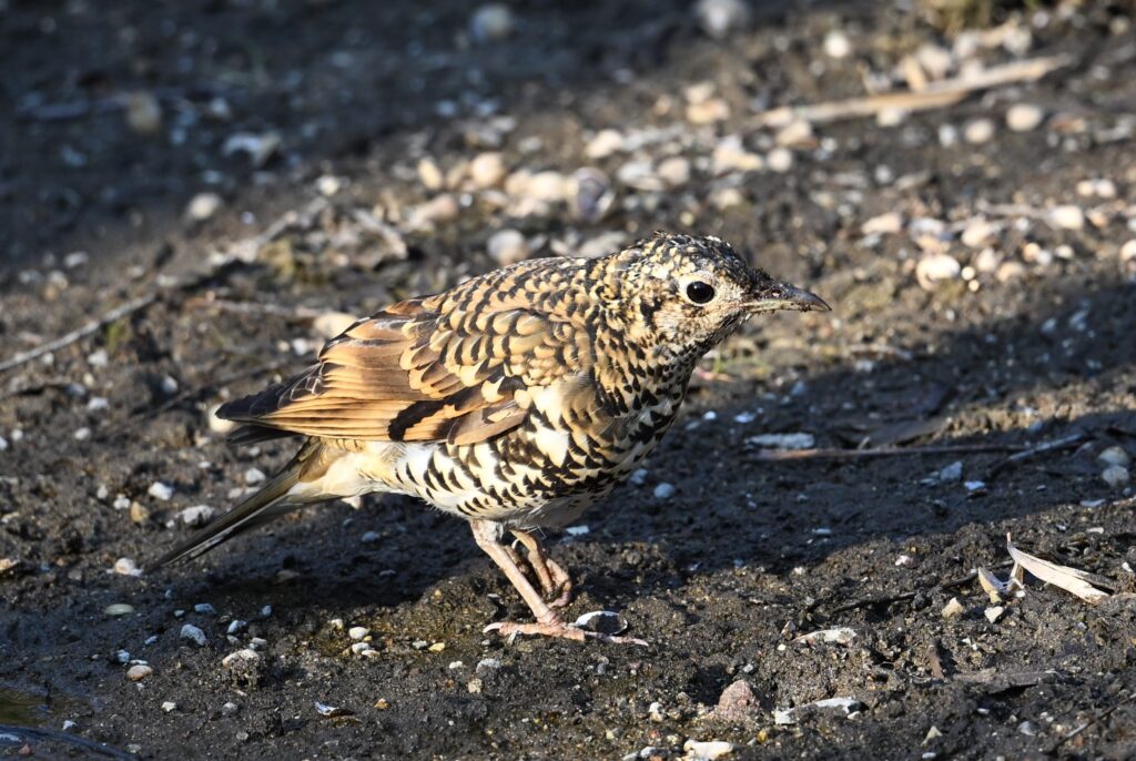 トラツグミ ツグミ科 常連さんによりますと、この近辺には2羽のトラツグミが現れるとのことですが、今回撮影したのは左足が不自由な方です。健常な個体と比べて動きはゆっくりで、トラダンスを踊ることはできないですが、厳しい自然の中で懸命に生きていました。