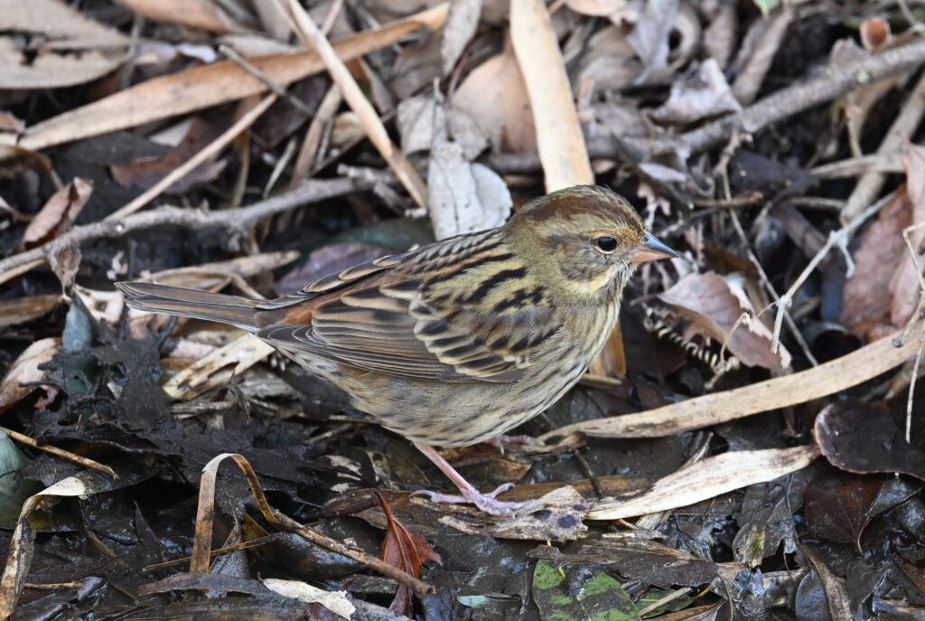 アオジ ホオジロ科 上がオス、下がメスと思われます。今の時期のアオジのオスとメスは行動を共にしないようです。メスは同じ個体かどうか不明ですが、1月にはクロジのオス若と行動をともにしていました(野鳥近影Jan2026-1)。